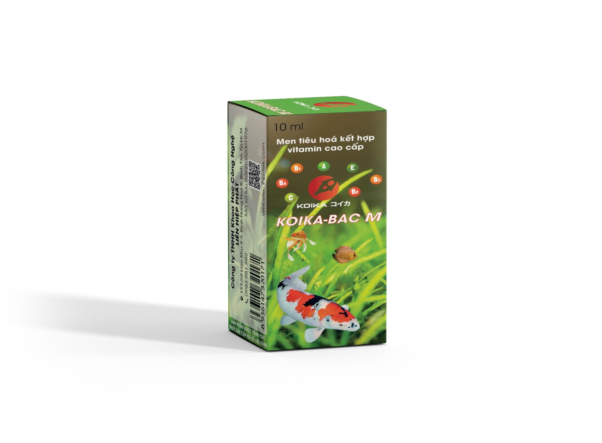 KOIKA-BAC M, Men tiêu hóa kết hợp vitamin cao cấp giúp cá khỏe đẹp, tăng cường đề kháng, giúp cá hồi phục sau thời gian bị bệnh, đặc biệt là bệnh đường ruột. Giảm thiểu bệnh đường ruột như phân trắng, sình bụng.